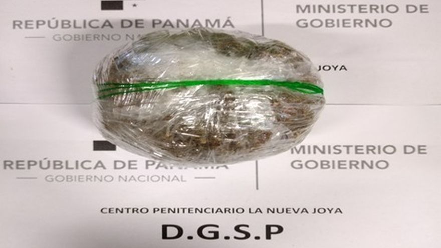 Un envoltorio de forma redonda, forrado con plástico color transparente con hierba seca, que presume sea sustancia ilícita, fue decomisado por custodios de la Unidad de Vigilancia Motorizada Penitenciaria en el sector D de La Nueva Joya.