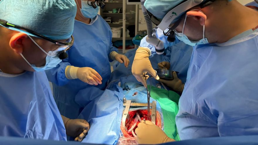 La cirugía fue liderada por el doctor Pedro Echeverría, junto a la doctora Lizeth Saldaña, residentes de cirugía cardiovascular, y el equipo de anestesiología del Centro Nacional Especializado Cardiovascular y Torácico (CENACET), en un trabajo multidisciplinario clave para el éxito del procedimiento.