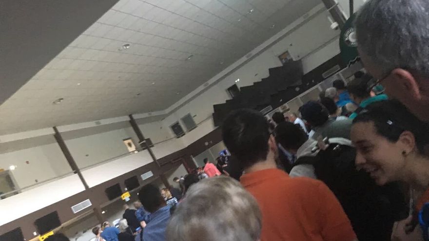 Usuarios en redes sociales reportaron las largas filas que tuvieron que formar para poder partir, debido a que por la falta de energía, tuvieron que ser procesados manualmente.