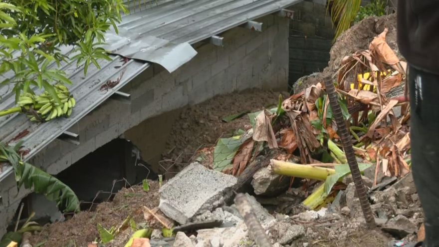 El deslizamiento de tierra arrasó con el muro que bordeaba la vivienda que fue afectada. La rápida acción de los uniformados y el apoyo de la comunidad fue crucial para evacuarlos del lugar.