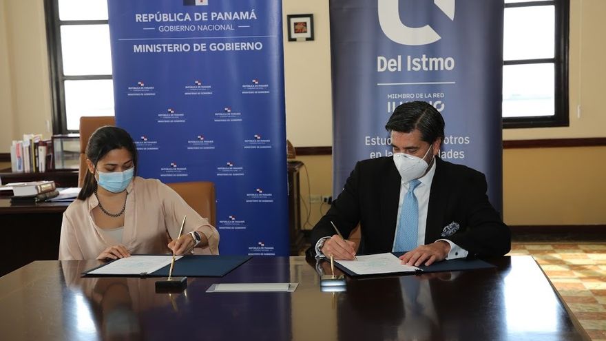 La ministra de gobierno, Janaina Tewaney Mencomo, y el rector de la Universidad del Istmo (UDI), Juan Fernando Montañez, firmaron un acuerdo de cooperación académica, técnica y científica para desarrollar actividades de enseñanza–aprendizaje en las áreas de logística de manejo de desastres y asistencia humanitaria.