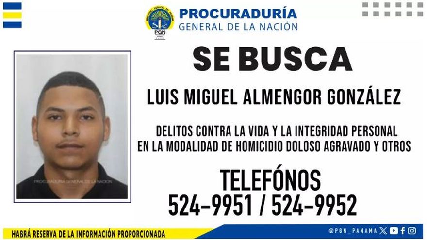 Se trata del ciudadano Luis Miguel Almengor González, quien es requerido por su presunta vinculación en el homicidio doloso agravado y otros delitos en perjuicio de Reyes Zambrano, quien fue encontrado descuartizado el pasado 7 de marzo en el sector de Felipillo, corregimiento de La 24 de Diciembre.