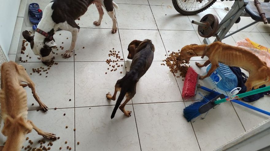 Todos los animales fueron encontrados en estado caquéxico, es decir, en un estado de desnutrición extrema debido a la falta de alimentación diaria. Lamentablemente, una de las cachorras, a quien sus rescatistas le dieron el nombre de "Cristina", no resistió y murió hace un par de horas.