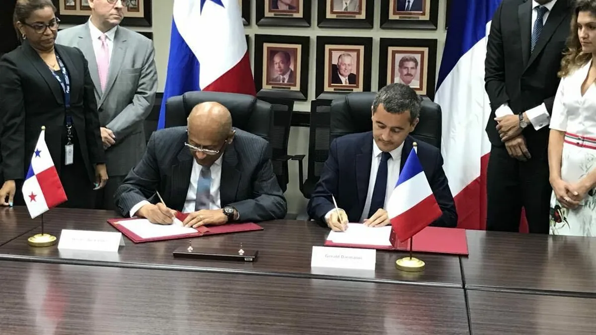 "Con el ministro de Economía y Finanzas de Panamá, Héctor Alexander, hemos firmado un memorando para conducir nuestra cooperación en materia fiscal a nivel de los estándares internacionales", escribió Darmanin en su cuenta de Twitter.