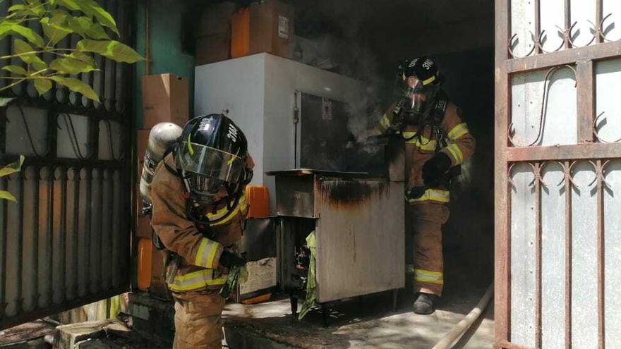 Se colocan sus equipos y entran a la estructura. Los bomberos descubren que se trata de la máquina freidora que está en llamas, por lo que dos unidades deciden sacarla hasta el patio trasero del restaurante y controlan el fuego.
