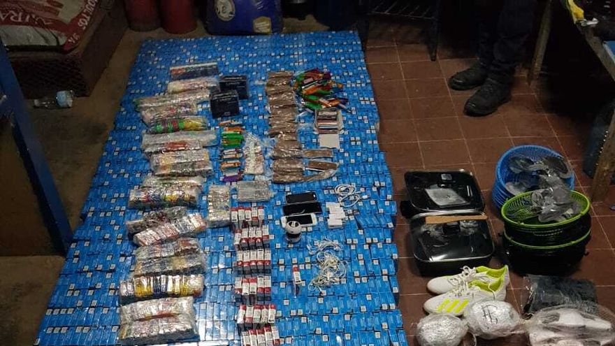 El hallazgo se registró este lunes 16 de noviembre, encontrando tres paquetes envueltos en cinta adhesiva con hierba seca, tres bolsas plástica transparente con hierba seca, 2 mil 381 paquetes de cigarrillos, 13 motores e igual cantidad de hélices de abanicos, tres teléfonos celulares, 741 encendedores, 19 bolsas plásticas transparentes con hojas de “feeling”, pantalones cortos, balones de fútbol, zapatillas, capote negro, pesas digitales, sartenes eléctricos, bolsas trasparentes con navajas de afeitar, memorias USB, bocina chica y auriculares.