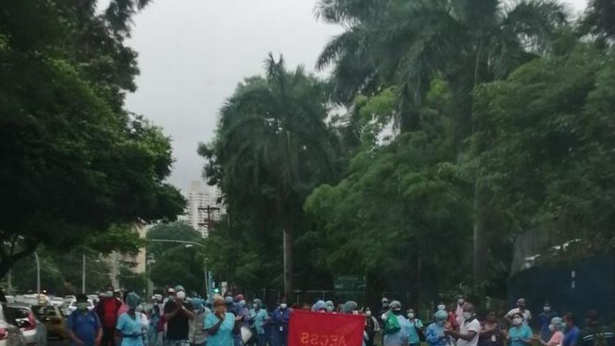 Personal del Complejo Hospitalario de la Caja de Seguro Social, salió nuevamente a protestar, este viernes 3 de julio, pero esta vez, cerrando uno de los carriles de la vía Transístmica.