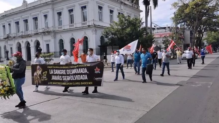 Pese a los decretos de movilidad establecidos y que mantienen una cuarentena absoluta este fin de semana, desde las 9:50 a,m,, organizaciones y grupos sindicales, realizaron una caminata por la Avenida Perú, en honor a los caídos en la lucha por la soberanía, el 9 de enero de 1964.