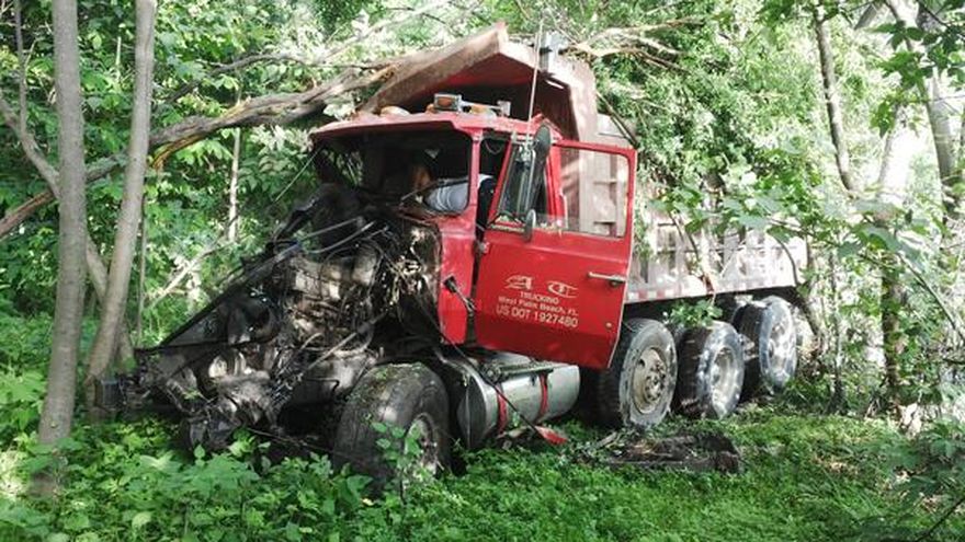 Se trata de un camión volquete que alparecer el conductorperdió el control y se estrelló contra unos arboles.