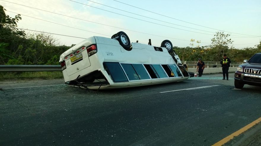 Se trató de un choque y vuelco entre un auto tipo sedán y un bus tipo Coaster.