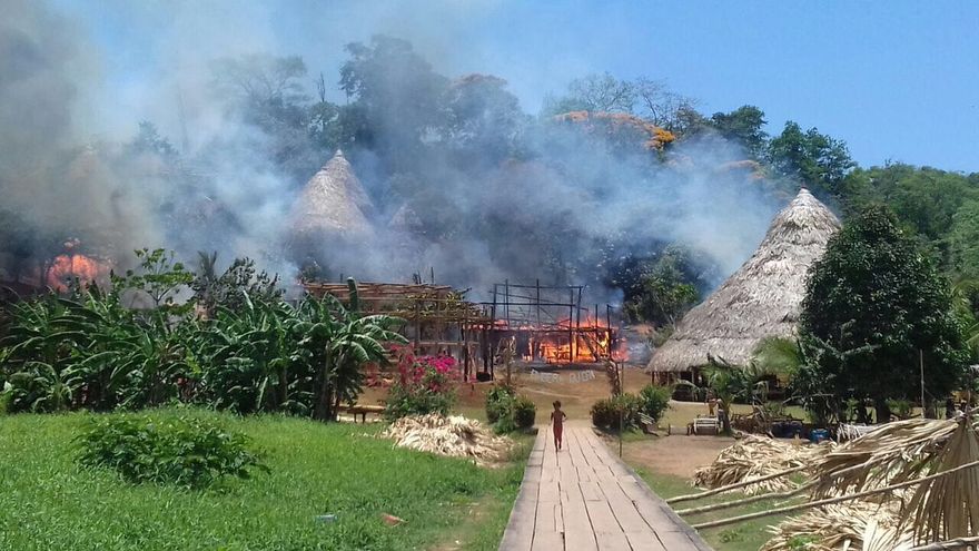 Las viviendas de cinco familias fueron destruidas por un incendio este jueves 13 de abril en la comunidad indígena-turística Emberá Querá, en el río Gatún, provincia de Colón.