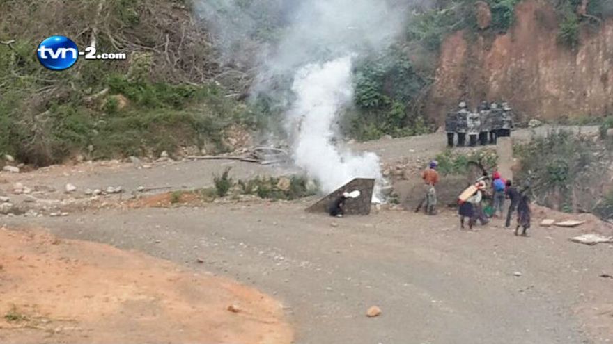 La Policía Nacional eliminó una de las barricadas que los Ngäbes habían puesto en la vía que lleva al proyecto.