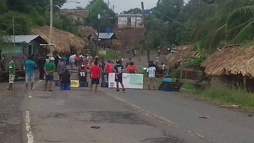 Moradores de la comunidad de Akua Yala, en la Comarca Guna de Madungandí, al este de la provincia de Panamá, cerraron la calle a la altura del puente del Lago Bayano.