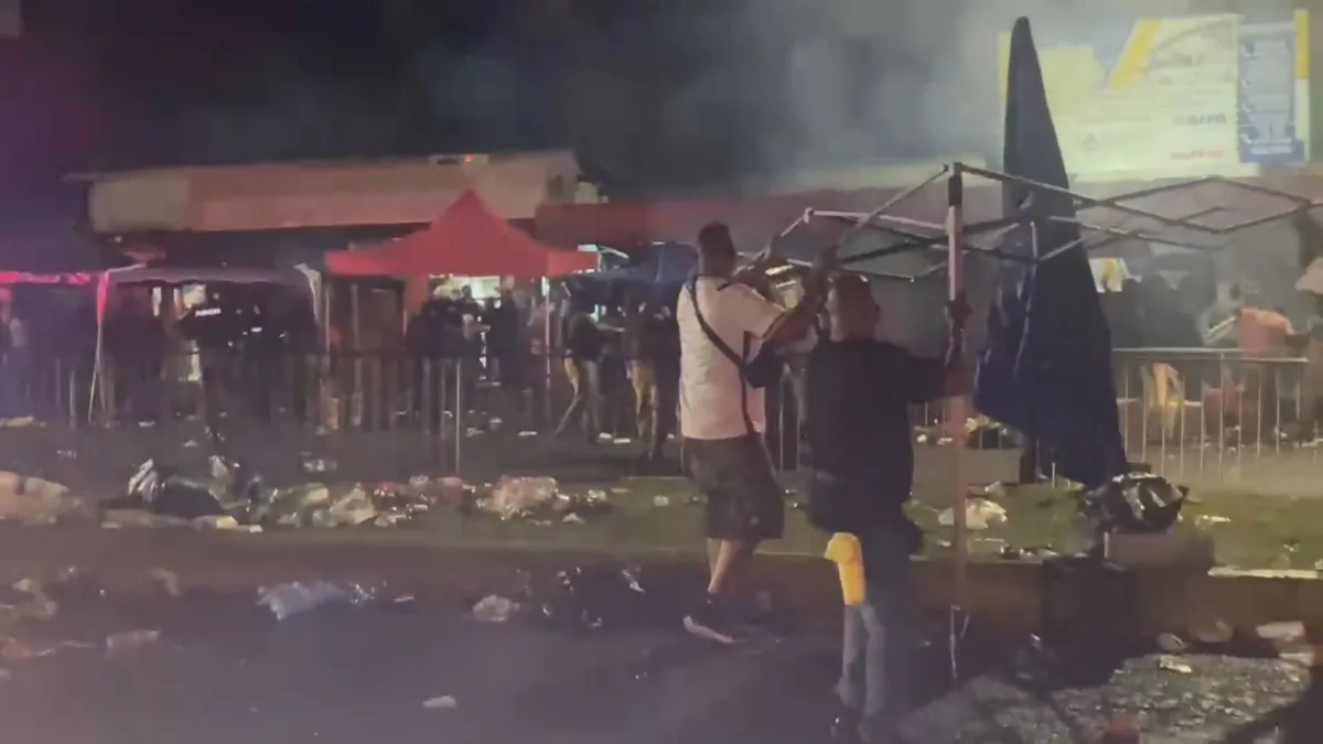 “Durante el cierre del desfile se registró una riña tumultuaria que provocó la intervención inmediata de las unidades policiales. En ese momento, una gran multitud comenzó a lanzar objetos contundentes como piedras y botellas”, detalló el subcomisionado.