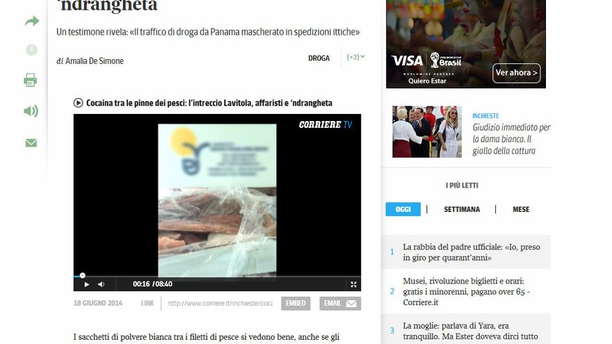 Según el reportaje, Lavítola y un “poderoso empresario panameño” estarían envueltos en el envío mensual de presunta cocaína escondida entre el cargamento de un barco pesquero, hacia la región de Calabria en Italia.