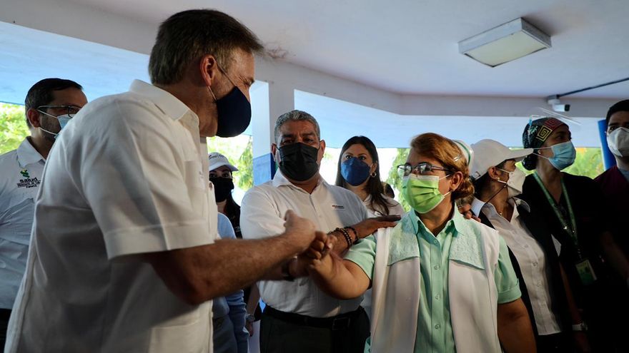 Lo anterior fue para presenciar cómo las más de 500 mil vacunas donadas por el gobierno de EE.UU. son aplicadas a la población.
