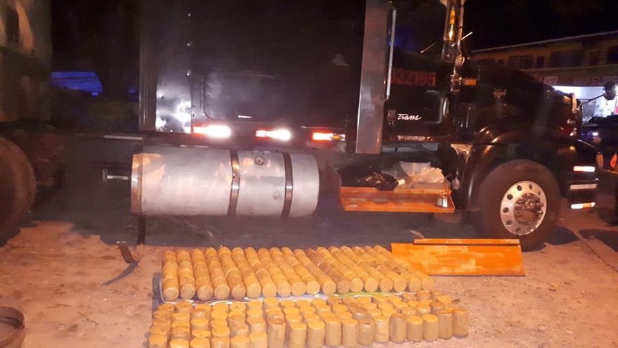 Mediante un operativo antidrogas efectuado en Chame, se logró el decomiso de 186 paquetes de forma cilíndrica con cocaína, que estaban ocultos en tanques de combustible a bordo de un camión articulado.