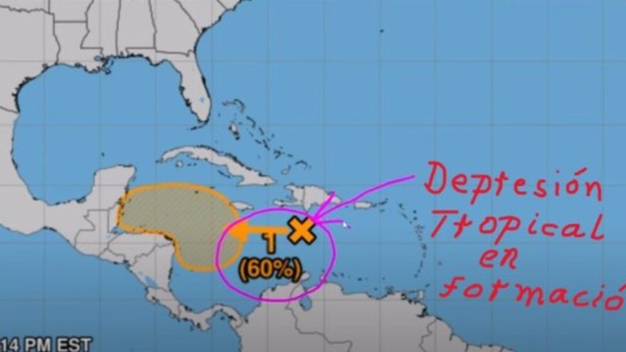 Con lo cual, por el momento, la probabilidad de que este sistema evolucione a una depresión tropical en las próximas 72 horas es de un 60%.