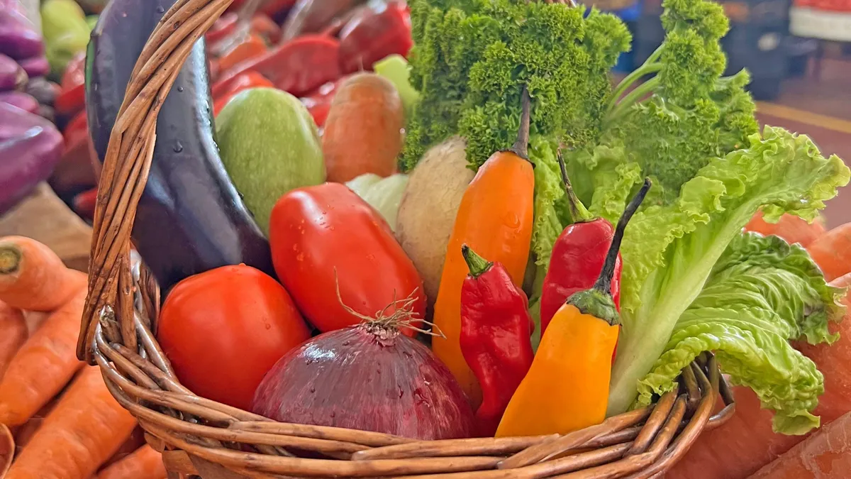 Una canasta con verduras y legumbres en Merca Panamá. / Merca Panamá