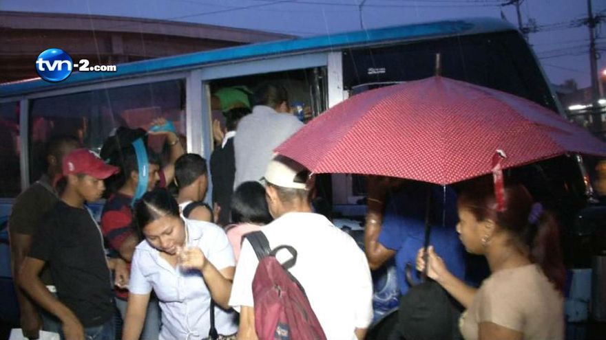 Miles de personas se vieron esta madrugada correr de un lugar a otro bajo la lluvia para primero, no mojarse y segundo para conseguir transporte en el corregimiento de la 24 de Diciembre, ante la falta de paradas y metrobuses.El punto observado por TVN es uno de los de mayor movimiento de pasajeros, frente al supermercado Xtra, donde se construye una zona paga.Ante la falta de paradas, las personas se apiñaban bajo un improvisado y reducido techo, donde se salpicaban con el agua fría.Por la desesperación ante la falta de metrobuses, los usuarios utilizaban los pocos diablos rojos o buses piratas, sin importar que les cobren un dólar cuando el pasaje regular es de 0.25.Los diablos rojos se llenaban rápidamente de pasajeros y se vio a una madre con su niño desistir de subir a uno porque ya no había espacio.El ministro de la Presidencia, Roberto Henríquez anunció ayer que después de las elecciones del 4 de mayo se revisará el contrato con la empresa a cargo de los metrobuses, Mi Bus.El ministro Henríquez dijo que si Mi Bus no logra demostrar que ha mejorado el servicio, se tomará una medida extrema, porque se acabó la paciencia y los usuarios no pueden seguir afectados.Sin embargo, rehusó precisar si se está negociando con otras empresas para que incursionen en el transporte público.