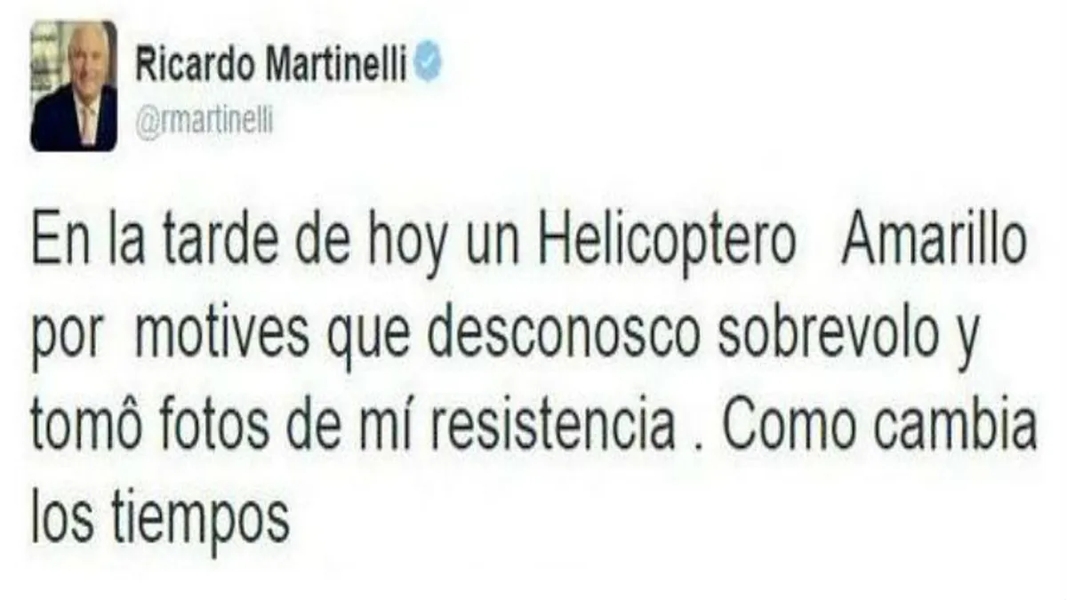El expresidente de la República, Ricardo Martinelli denunció que ayer, sábado 25 de octubre, a través de su cuenta de Twitter que un helicóptero sobrevoló su propiedad y tomó fotos.