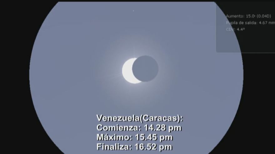 De acuerdo con los expertos, el fenómeno natural se verá de forma parcial en Panamá y comenzará a las 1:15 p.m., llegando a su punto máximo a las 2:28 p.m. y culminará a las 3:33 p.m., con una duración total de dos horas y 28 minutos.