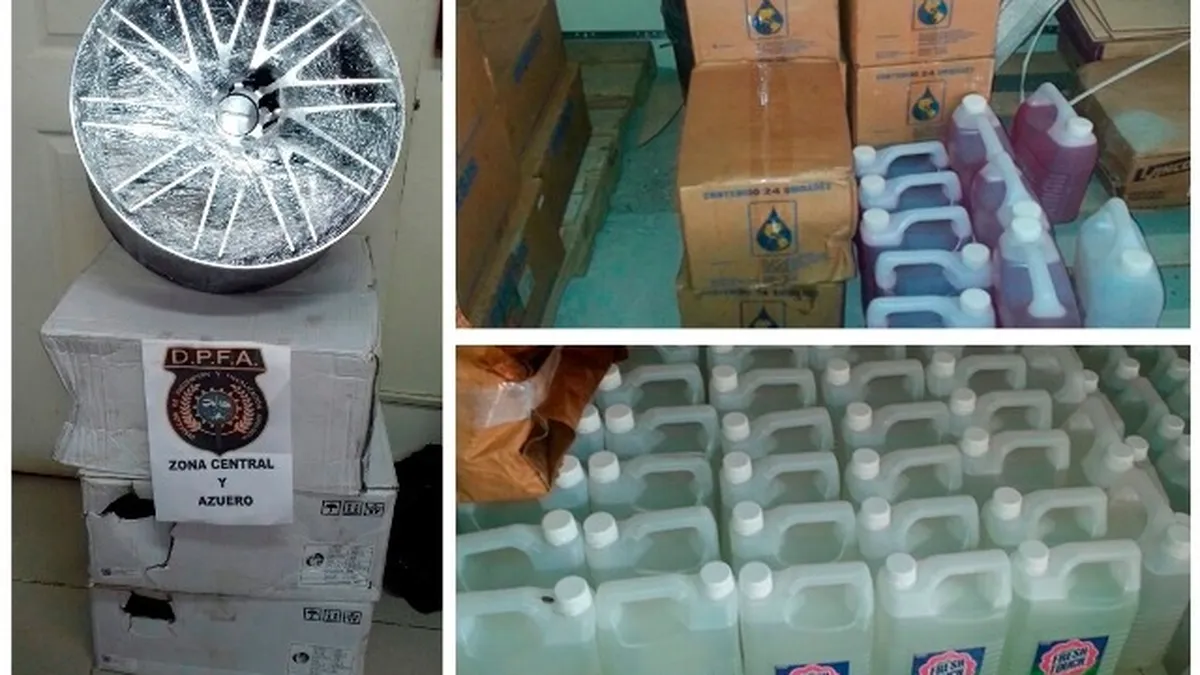 También en Divisa, los inspectores de la DPFA decomisaron 6 cajas de limpiadores Master Clean, 3 cajas de detergentes líquidos, 1 caja de detergente Master Clean, 5 cajas de jabones líquidos para mano, 12 cajas de detergentes marca Fresh, 21 unidades de detergentes marca Fresh de 500ml, 88 galones de detergentes marca Fresh, 11 unidades de jabones desinfectantes Master Clean, 6 galones de desinfectantes Master Clean de diversos aromas y 4 tanques de detergentes marca Fresh que viajaban cubiertos en la parte trasera de un auto pick-up.