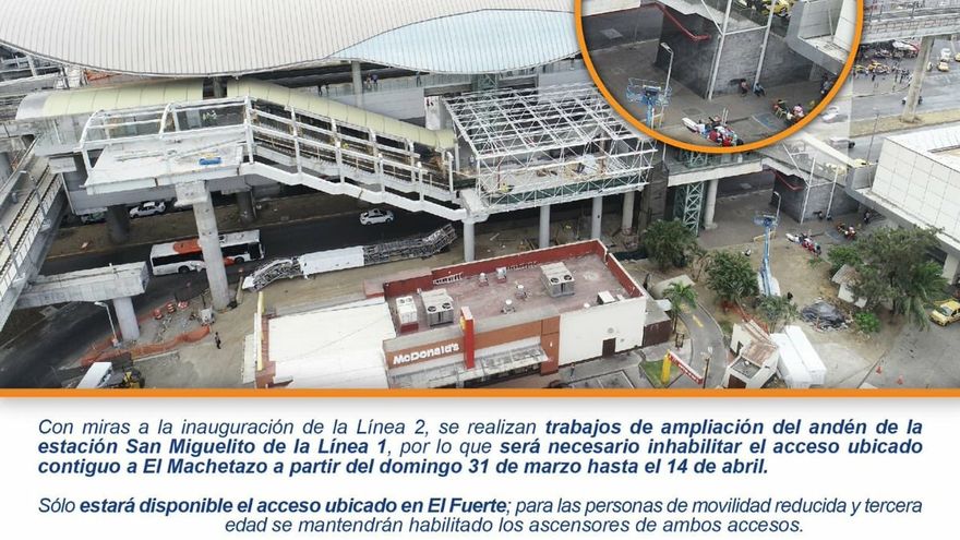 El Metro de Panamá anunció que se inhabilitará el acceso de la estación de San Miguelito contiguo al supermercado El Machetazo, desde el domingo 31 de marzo hasta el 14 de abril.