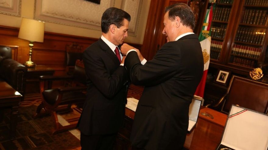 El presidente de la República, Juan Carlos Varela en medio de la gira que realiza en los Estados Unidos Mexicanos condecoró al mandatario de este país, Enrique Peña Nieto con la orden Manuel Amador Guerrero en grado de Collar.