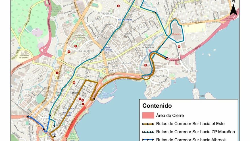En ciudad de Panamá, los servicios de Panamá Viejo, Corredor Sur y El Chorrillo operarán con desvíos del 1 al 6 de marzo por el cierre de la Avenida Balboa y la Cinta Costera.
