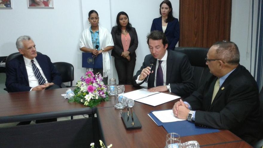 En ceremonia de firma del convenio estuvieron presentes la viceministra del Mides, Zulema Sucre, el licenciado Stanley Motta y las asesoras del proyecto, Ana Lucrecia Tovar y Patricia Planells.