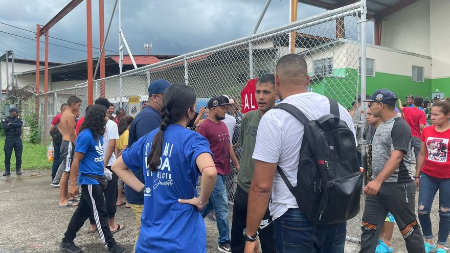 Los migrantes, que atravesaron la peligrosa selva del Darién, frontera con Colombia, permanecen en una bodega habilitada como albergue donde son atendidos por autoridades de Panamá y Venezuela mientras esperan para regresar a su país por avión, pero deben conseguir un boleto que afirman cuesta 280 dólares.