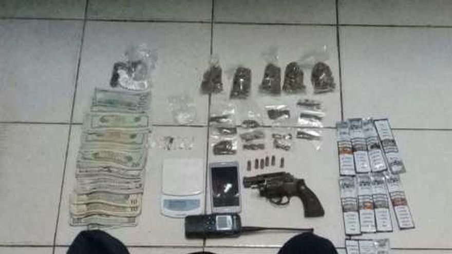 También se logró ubicar un revólver, municiones, un radio comunicador, un pasamontañas, una pesa pequeña, sobres con supuesta sustancia ilícita y dinero en efectivo.