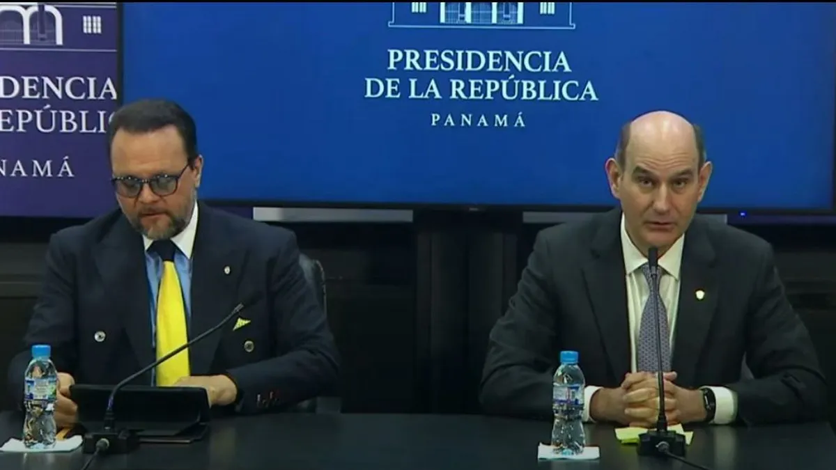 Durante una conferencia, el ministro de Economía y Finanzas, Felipe Chapman, advierte sobre riesgos en cambios a la Ley de Interés Preferencial, mientras que el ministro de Comercio e Industrias, Julio Moltó, informa avances legales para la exportación del concentrado de cobre.