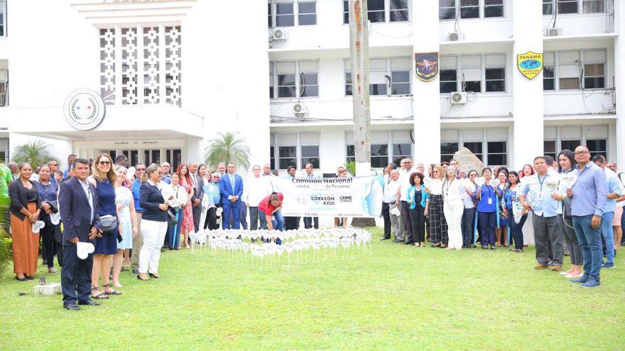 Panamá, Ciudad de Panamá/La oficina institucional contra la trata de personas del Ministerio de Seguridad Pública (Minseg), realizó una cadena humana y siembra de corazones azules en apoyo a la campaña contra la trata de personas.