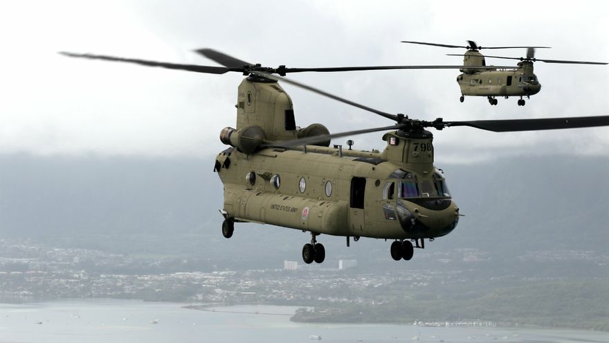 Los helicópteros CH-47 Chinook son utilizados para el transporte de carga pesada, de tropas, despliegue de artillería y reabastecimiento en el campo de batalla.