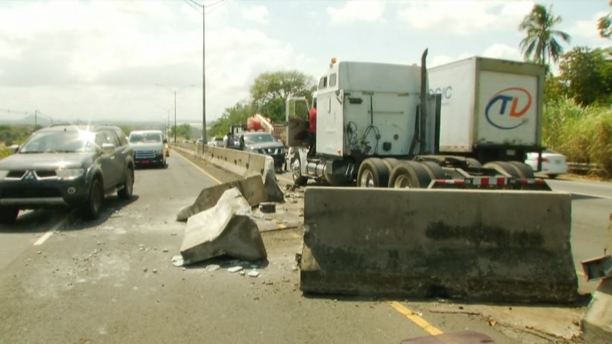 Una mula chocó contra un muro de contención al quedarse sin frenos, en el sector de Vacamonte, este sábado 17 de febrero.