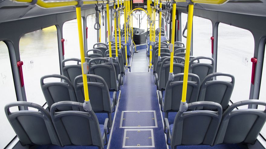 Dentro hay cambios fundamentales: los autobuses tienen 45 puestos acolchados, diez más que los móviles actuales, fabricados en Cundinamarca, Colombia. Un piso azul y agarraderas personales se suman.