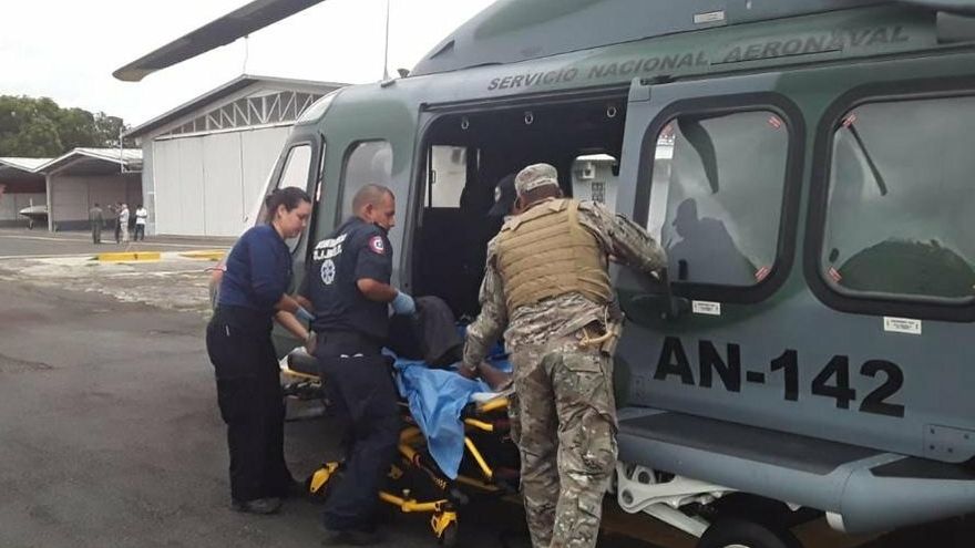 Los uniformados del Senan hacen uso de sus equipos de comunicación y piden apoyo del helicóptero AN-142. La aeronave se traslada hasta la escena con un paramédico a bordo, quien le da atención primaria al herido y lo llevan hasta el hospital.