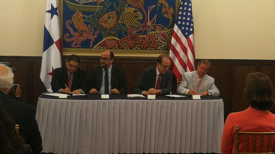 El acuerdo fue firmado por los ministros panameños encargados de la Presidencia, Salvador Sánchez, y de Economía y Finanzas, Gustavo Valderrama, y por el Subsecretario para Asuntos Internacionales del Departamento del Tesoro de Estados Unidos, David Malpass.