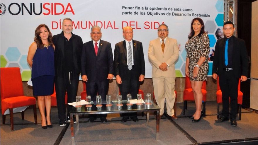 Miguel Bosé, junto al alcalde de la capital, José Isabel Blandón, el ministro Consejero de Salud Temístocles Díaz, el director de la oficina regional de Onusida en América latina, Cesar Núñez formaron parte del panel de discusión "la respuesta acelerada para poner fin a la epidemia del sida para 2030 en américa latina".