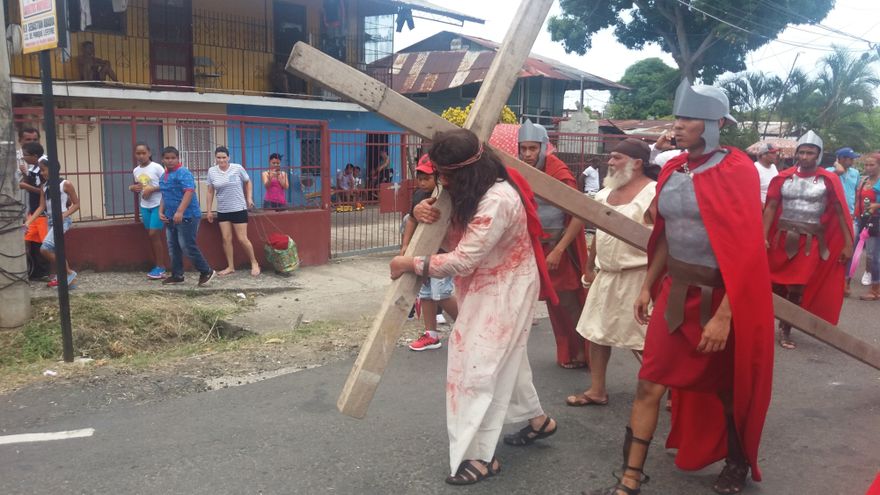 El Vía Crucis se realiza en las distintas calles de la comunidad de Panamá Viejo, en las que se representan las quince estaciones, hasta la crucifixión y muerte de Jesús.
