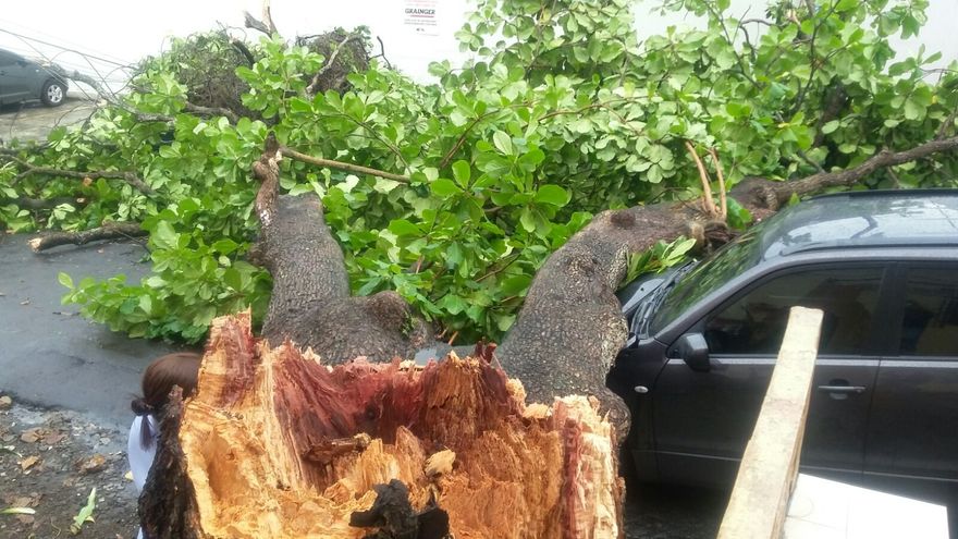 Un vetusto árbol cayó sobre una camioneta en el área conocida como Club X en Betania, tras las fuertes lluvias y vientos registrados la tarde de este martes, 29 de septiembre.