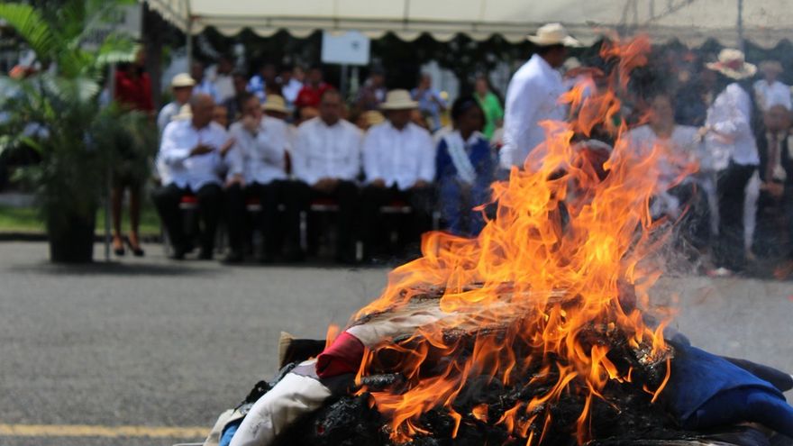 La Gobernación de Panamá realizó este martes 30 de octubre, el acto protocolar de cremación de banderas en desuso o en mal estado en los estacionamientos del Palacio Dr. Belisario Porras.