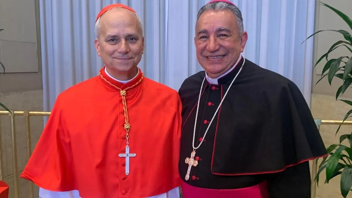 Foto reciente del arzobispo de Panamá, José Domingo Ulloa (der.) junto al hoy papa León XIV. / Foto cortesía: Arzobispado de Panamá.