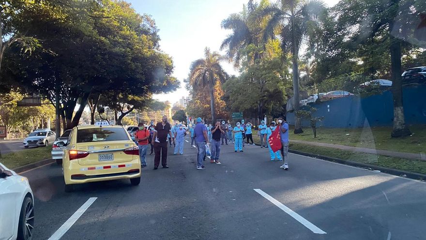 Personal médico de terapia respiratoria del Complejo Hospitalario de la Caja de Seguro Social, doctor Arnulfo Arias Madrid, cerró un carril de la vía Transístmica, este viernes 10 de julio.