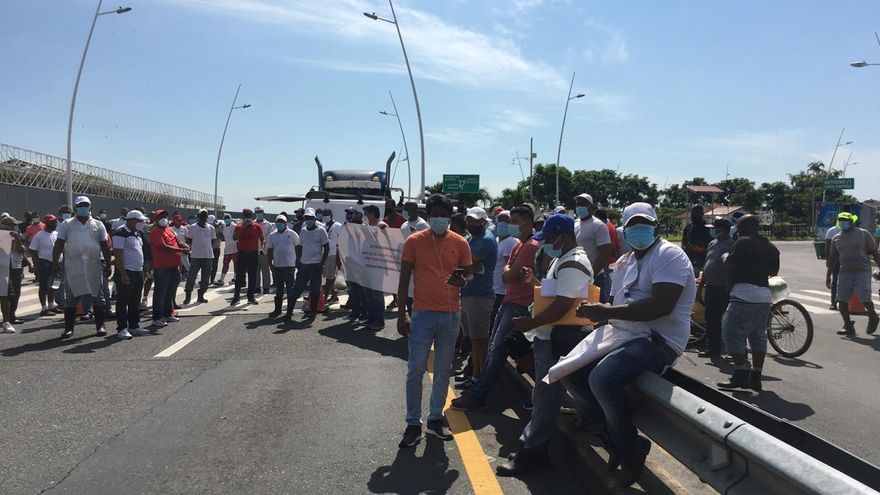 El tráfico vehicular se vio afectado frente al Mercado del Marisco en horas de la mañana de este viernes 16 de octubre, debido a una protesta que realizaron integrantes de un gremio de pescadores.