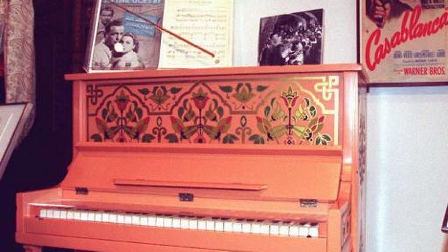 En la escena de culto en la que Ingrid Bergman pide a Sam, interpretado por Dooley Wilson, que toque su tema "As Time Goes By", el músico lo hace en este piano de color salmón.