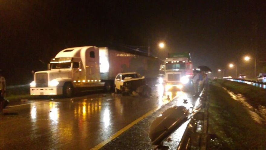 Un vehículo Nissan que iba pasando también fue golpeado y otros choques se dieron en el lugar, cuando los conductores se percataron de la gran cantidad de piedras de considerable tamaño que invadían la carretera.