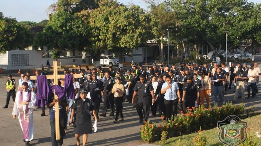 La sede central de la Policía Nacional fue escenario este viernes 20 de marzo del vía crucis, en el marco de la Semana Mayor.